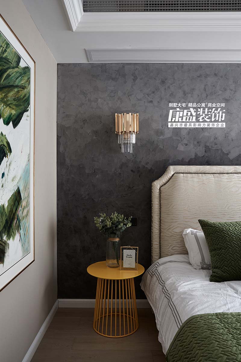 臥室是人生度過一生三分之一時(shí)光的場所,故臥室應(yīng)簡潔、大方,色彩方面應(yīng)以統(tǒng)一、和諧、寧靜為宜。米灰色和靚麗的綠色富有朝氣,一面朝陽的素雅大窗安靜地立著,幾縷陽光輕松照射到光潔地面上。漸變灰色的藝術(shù)漆墻面與整體墻面呼應(yīng)。