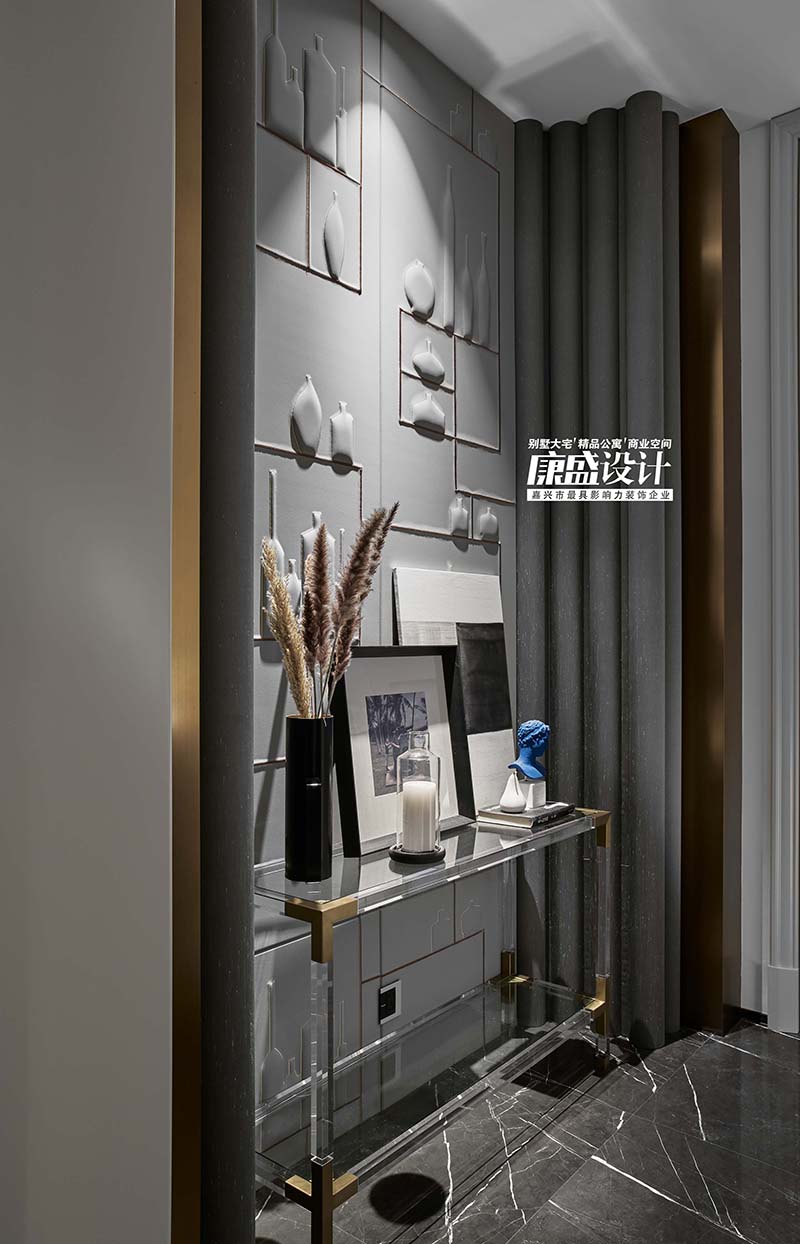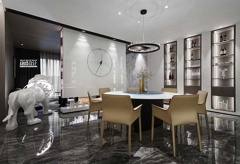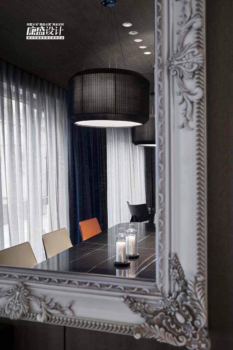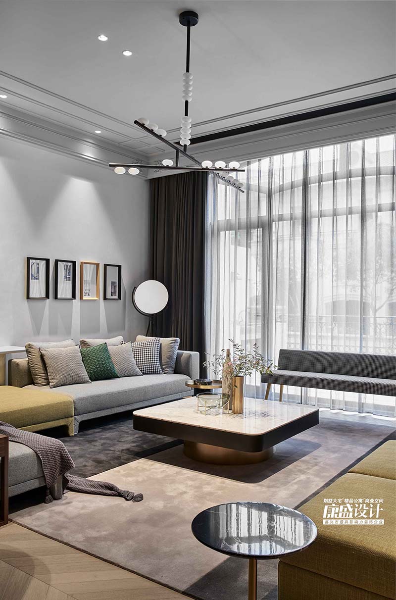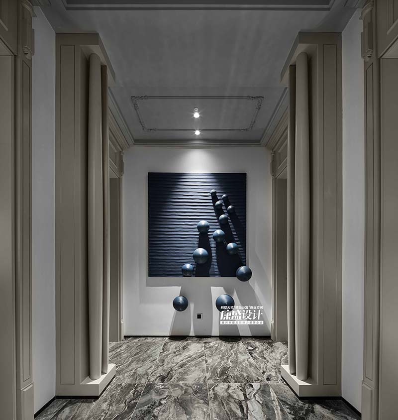 說它是現(xiàn)代風(fēng)格,但它的硬裝吊頂和護(hù)墻中大量運(yùn)用了法式線條作為點(diǎn)綴。不同風(fēng)貌并存,以元素共融關(guān)系貼近居住者的意義和習(xí)慣。有目的、有意識(shí)地挑選原現(xiàn)代和法式中具有代表性的、有意義的東西。從硬裝到軟裝,融合了許多的元素和標(biāo)識(shí)。好的作品亦是如此,沒有某一個(gè)點(diǎn)特別突出的特征讓我們?nèi)ヅ卸ㄋ仨毷鞘裁?,這也是一開始最初的暢想,在整體基調(diào)營(yíng)造大牌感氛圍的同時(shí)不把任何部分過分凸顯化。用非傳統(tǒng)的混合、疊加等手段,營(yíng)造出空間復(fù)雜、多遠(yuǎn)的氛圍,替代了風(fēng)格統(tǒng)一明確的特性。