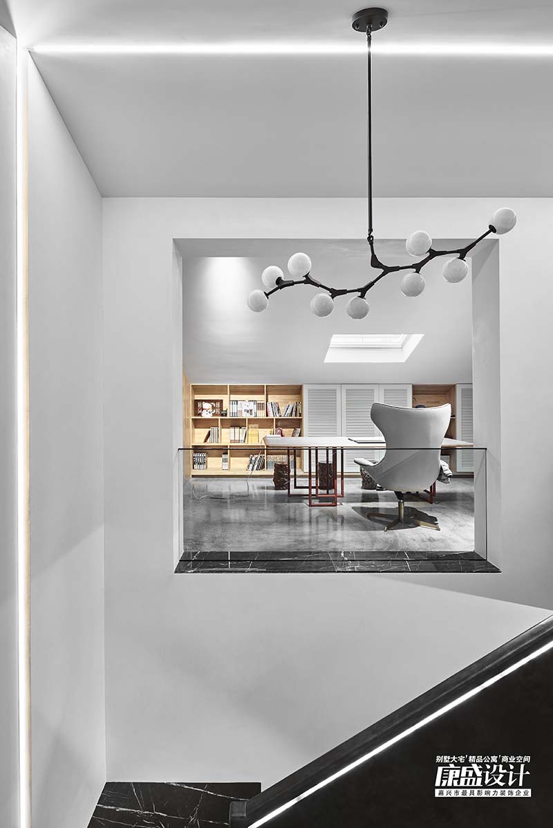現(xiàn)場(chǎng)燈光干凈利落,看似理性的燈光線條中也反對(duì)理性,思考人和人居住的狀態(tài),圍坐在一起爐邊談話的場(chǎng)景,一樓客廳與二樓客廳的布局十分玩味和無(wú)拘束,在看似不考究細(xì)節(jié)上其實(shí)花了很多時(shí)間去揣摩,很努力的去營(yíng)造看似不經(jīng)意的隨意。以強(qiáng)調(diào)非理性因素來(lái)達(dá)到一種設(shè)計(jì)中的輕松和寬容。