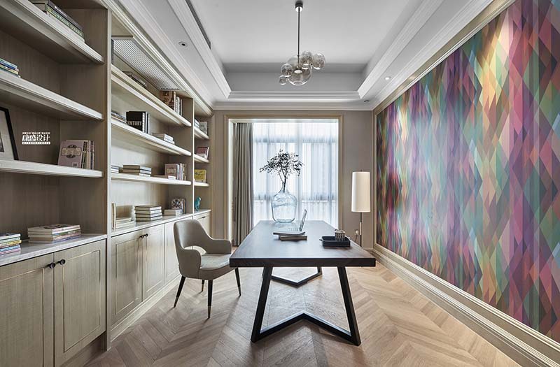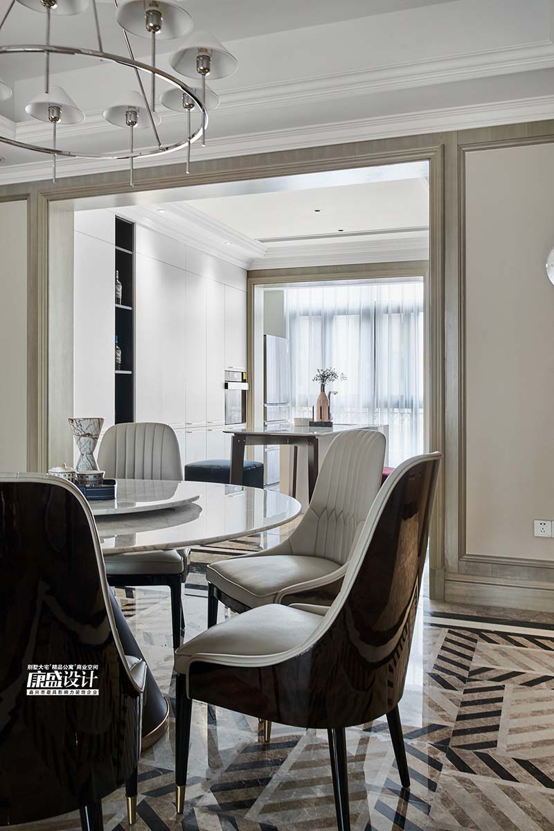 設(shè)計(jì)之初,我們首先考慮到的是功能分布,做了一些空間上的改變及調(diào)整。對(duì)于大平層來說,為了更合理地規(guī)劃每塊區(qū)域,使空間利用最大化,我們把生活區(qū)域劃為兩大塊:西邊套公共空間劃分為中廚、西廚、餐廳以及家庭廳,小孩游戲區(qū)和長輩的居住空間;東邊套公共空間主要?jiǎng)澐譃闀?huì)客廳、書房以及主人的居住空間。如此,不僅公私分開,而且主次分明。