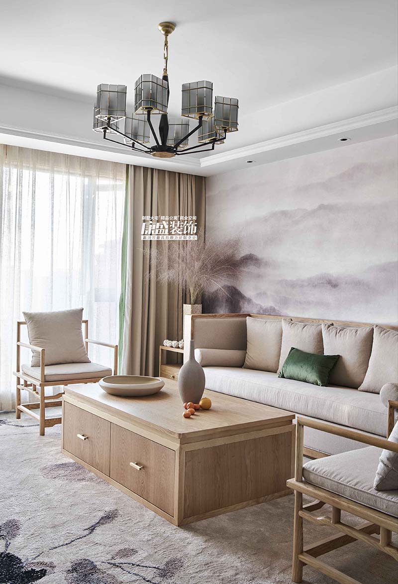 本案以新中式為主,但不是傳統(tǒng)意義上比較呆板的中式,和現(xiàn)代做了一個(gè)結(jié)合,沒(méi)有過(guò)多的裝飾,看上去更加淳樸自然。