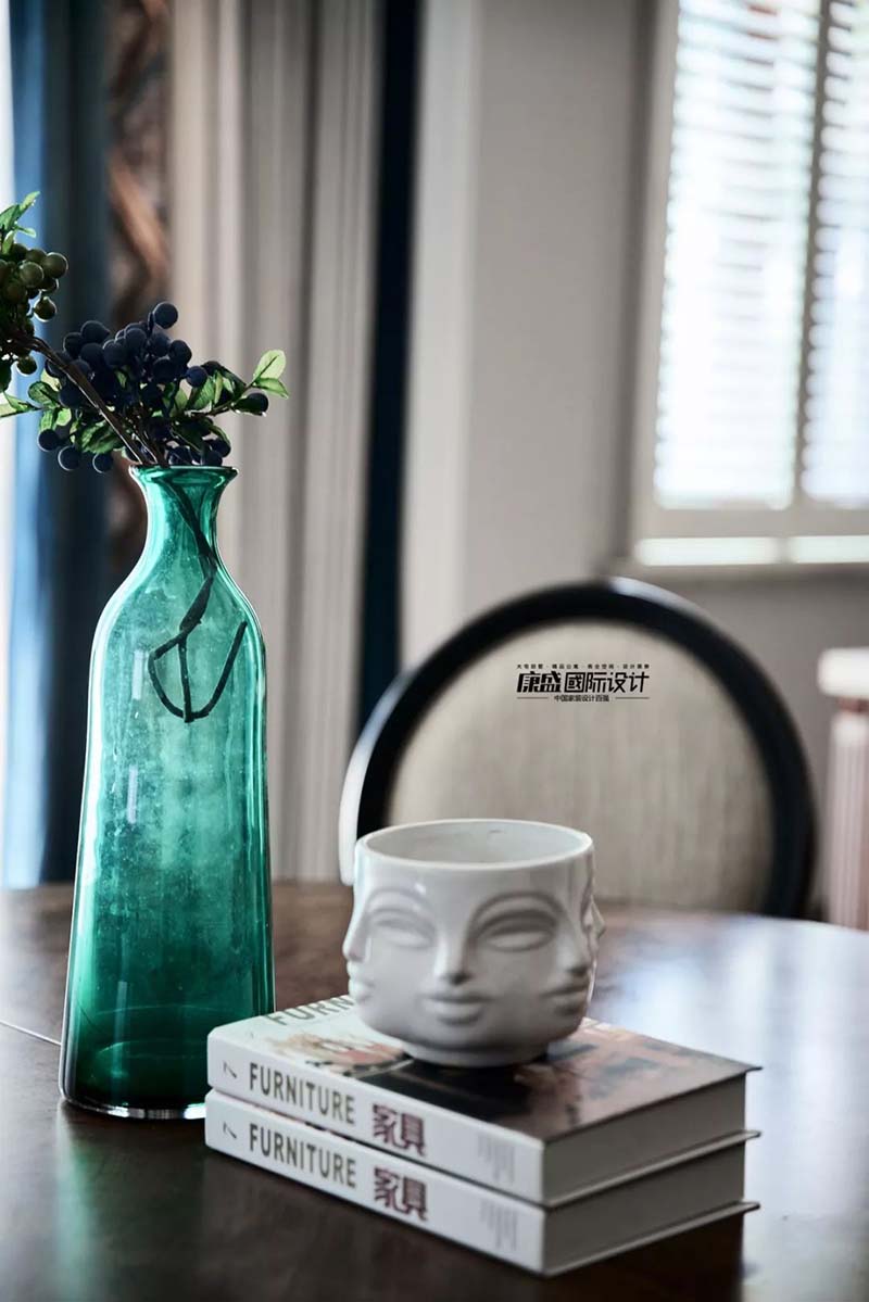 保有獨立區(qū)域的完整性,同時并沒有打破整體的連貫性,通過布局來敘述邏輯關(guān)系,讓功能性立場更為明確,真絲布包裹的餐椅,與窗簾同步色彩,多種幾何元素相結(jié)合,方正有序,圓潤有型,圍合成組,構(gòu)成賞心悅目的溫馨畫面。