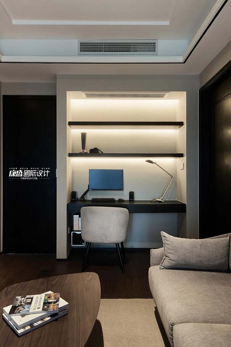 客廳充足的面闊和層高,使得沙發(fā)區(qū)獨(dú)立一片小島,為后部書(shū)桌區(qū)留出足夠空間,成就趣味十足的靈活擺位,躺在包裹感絕佳的沙發(fā)上,使人馬上進(jìn)入到閑適的狀態(tài)。