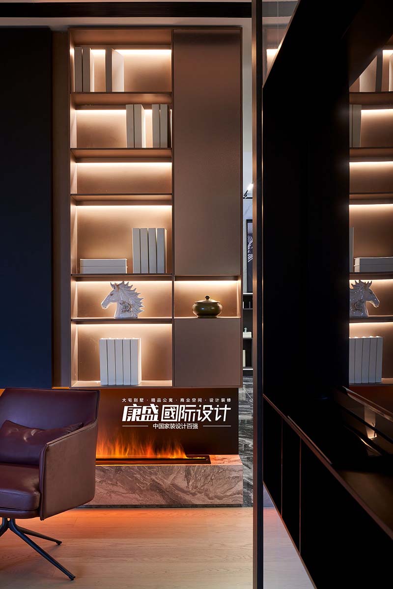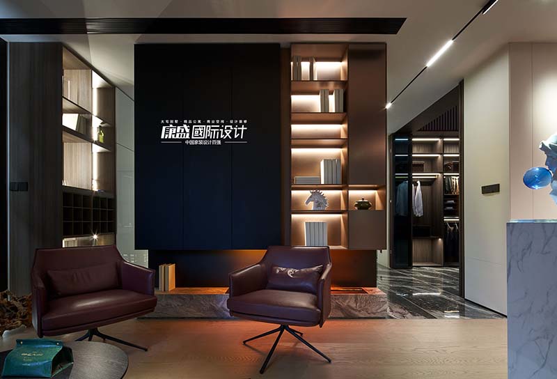 這個(gè)空間也有著樣板展示的屬性,設(shè)計(jì)用中性色調(diào)打造出一個(gè)舒適的空間。石材與皮革,木質(zhì)與布藝,不同材質(zhì)在碰撞中融合出獨(dú)特的現(xiàn)代生活方式與品位。