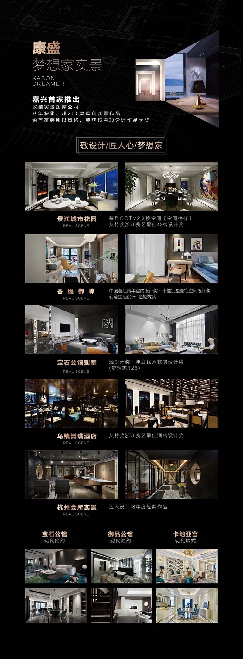 2012年,設(shè)立“夢(mèng)想家”實(shí)景作品庫(kù),至今已匯集超越100多套不同風(fēng)格的實(shí)景作品。其中,多套作品榮登業(yè)內(nèi)權(quán)威雜志,更多作品榮獲多項(xiàng)設(shè)計(jì)比賽大獎(jiǎng)。值得一提的是,2016年,公司作品“錢(qián)塘江畔”榮登央視交換空間之空間榜樣!2013年,公司又設(shè)立康盛易購(gòu)(主材一站式集約化服務(wù)平臺(tái))與康盛之家(吃、喝、玩、樂(lè),幸福萬(wàn)家)。憑藉分工更為精細(xì),設(shè)計(jì)更為新穎,施工更為苛刻,服務(wù)更為深入,康盛裝飾已然是一個(gè)有機(jī)的全面的家裝生活頻道。