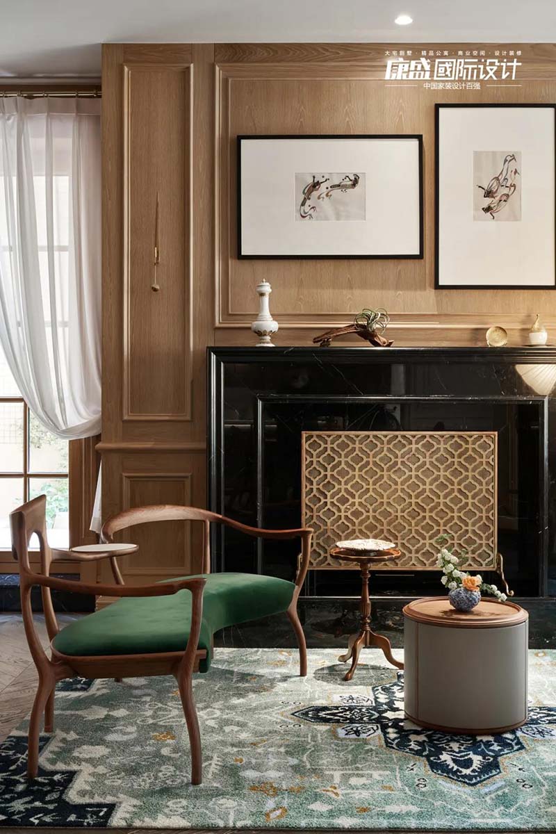 The family hall uses the classic wind of log color and the warm tone of solid wood furniture, allowing light and shadow to flow into the space and lock the time.