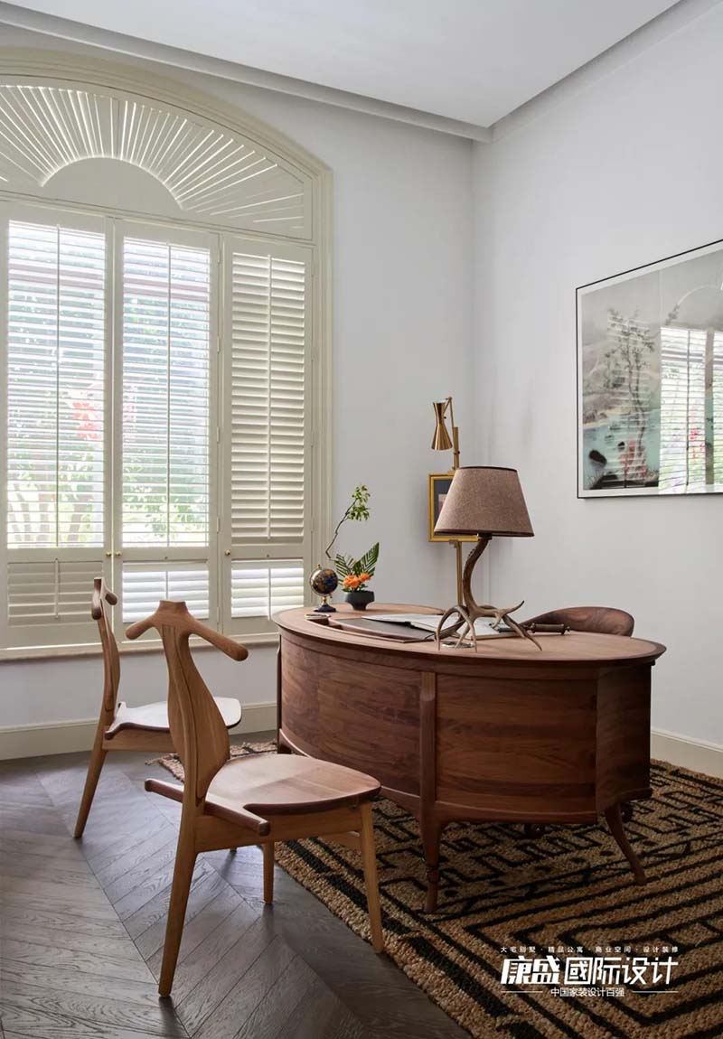主燈是女主人精心定制的鹿角造型,別具一格的設(shè)計,提升了整個空間的氣場。