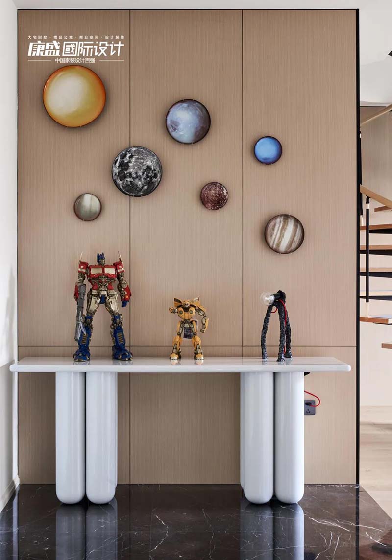 Transformers, planetary ornaments, spiral staircases, the boy's room is full of exploration of the unknown and the expectation of the future.