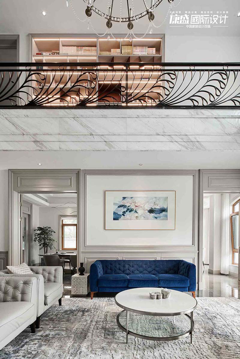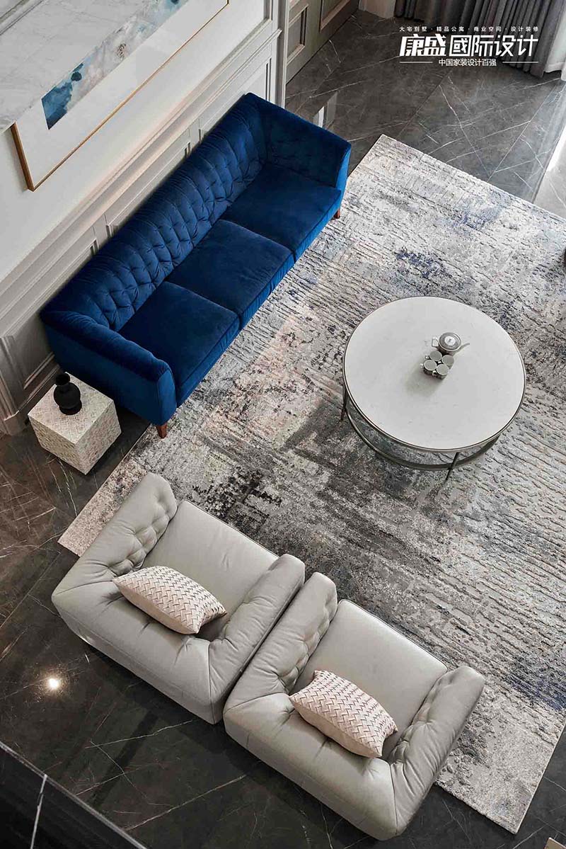 In the white space, the use of color is relatively restrained, the blue of the main sofa harmonizes the lackluster atmosphere,