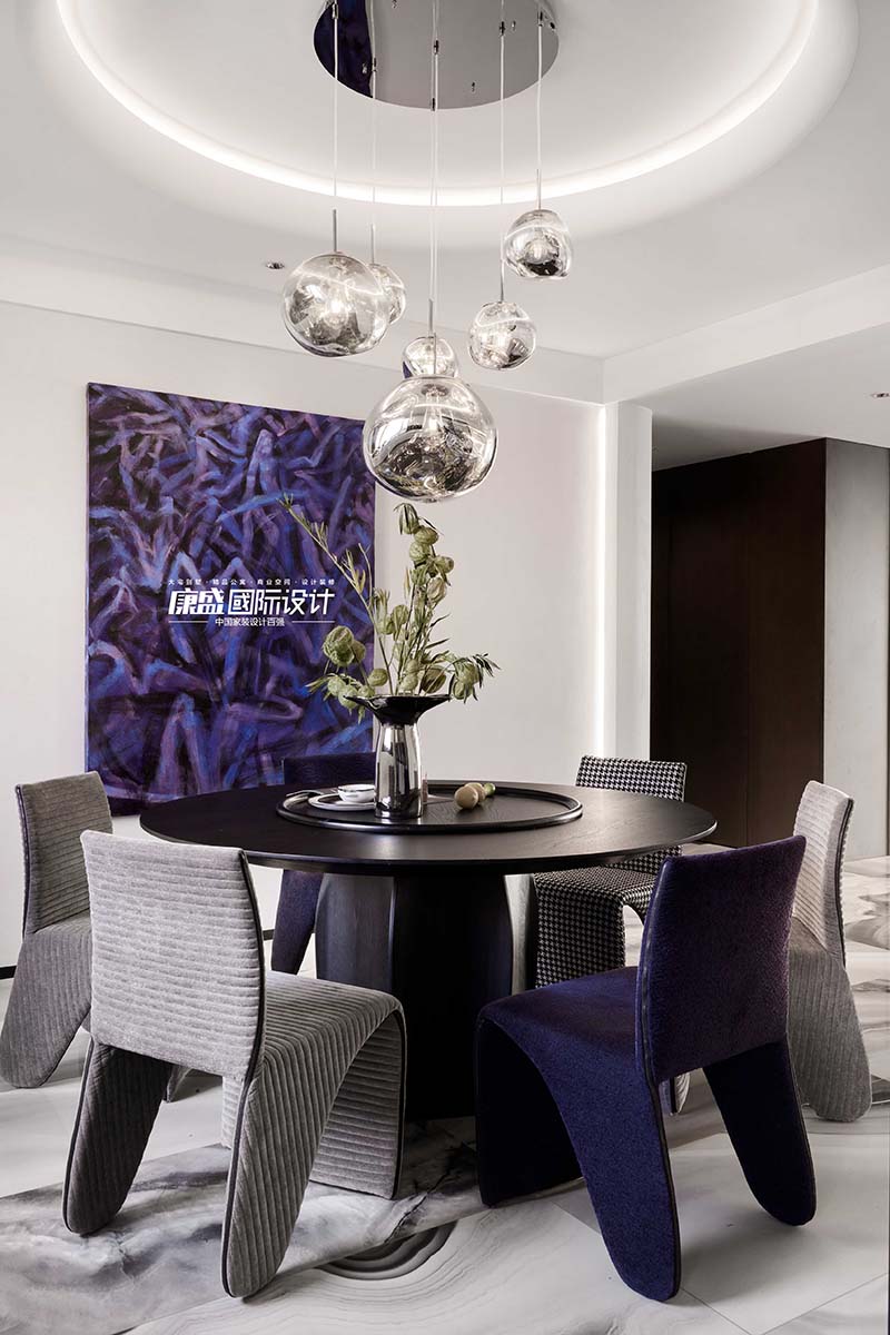個性的寫意空間泡泡沙發(fā)、金屬質感的座椅搭配地毯