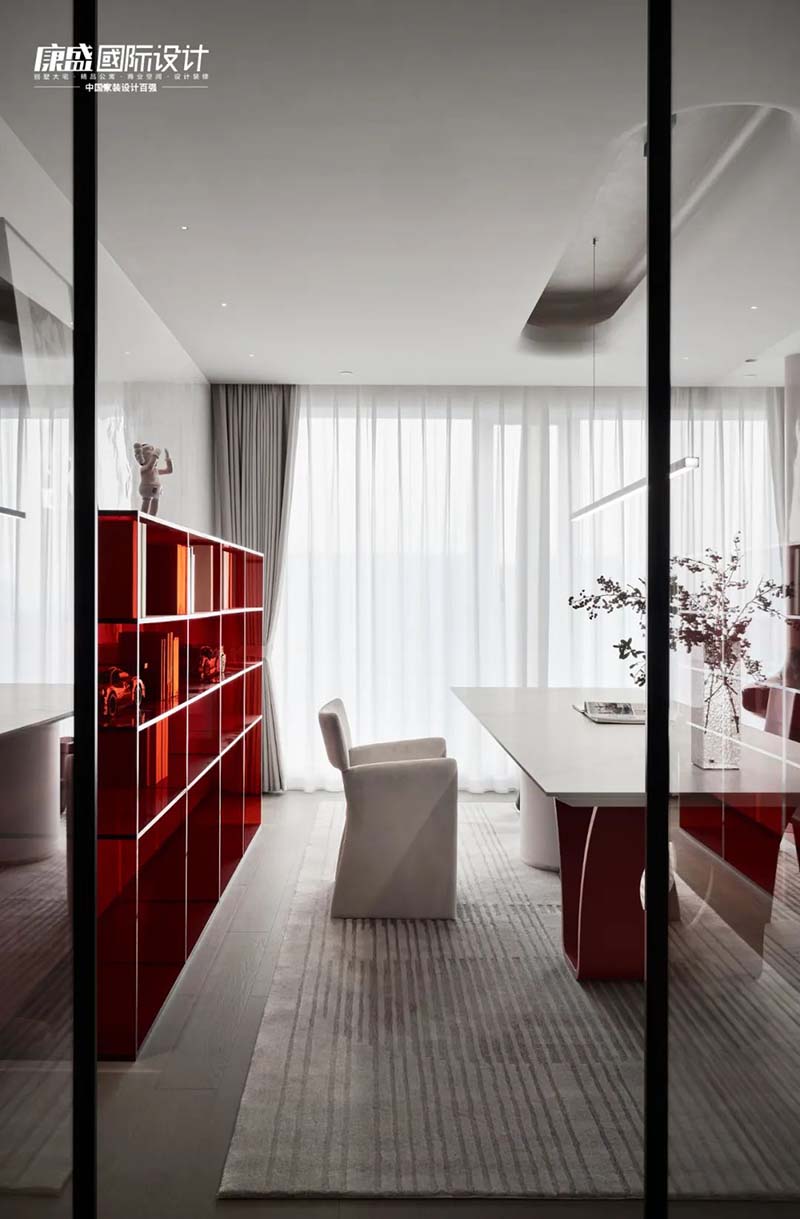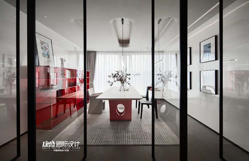玻璃元素塑造通透感,彰顯生活的儀式。紅色柜瞬間點(diǎn)亮空間,有眼前一亮的驚喜,大膽不浮夸,讓溫暖的家富有熱愛(ài)生活的朝氣。