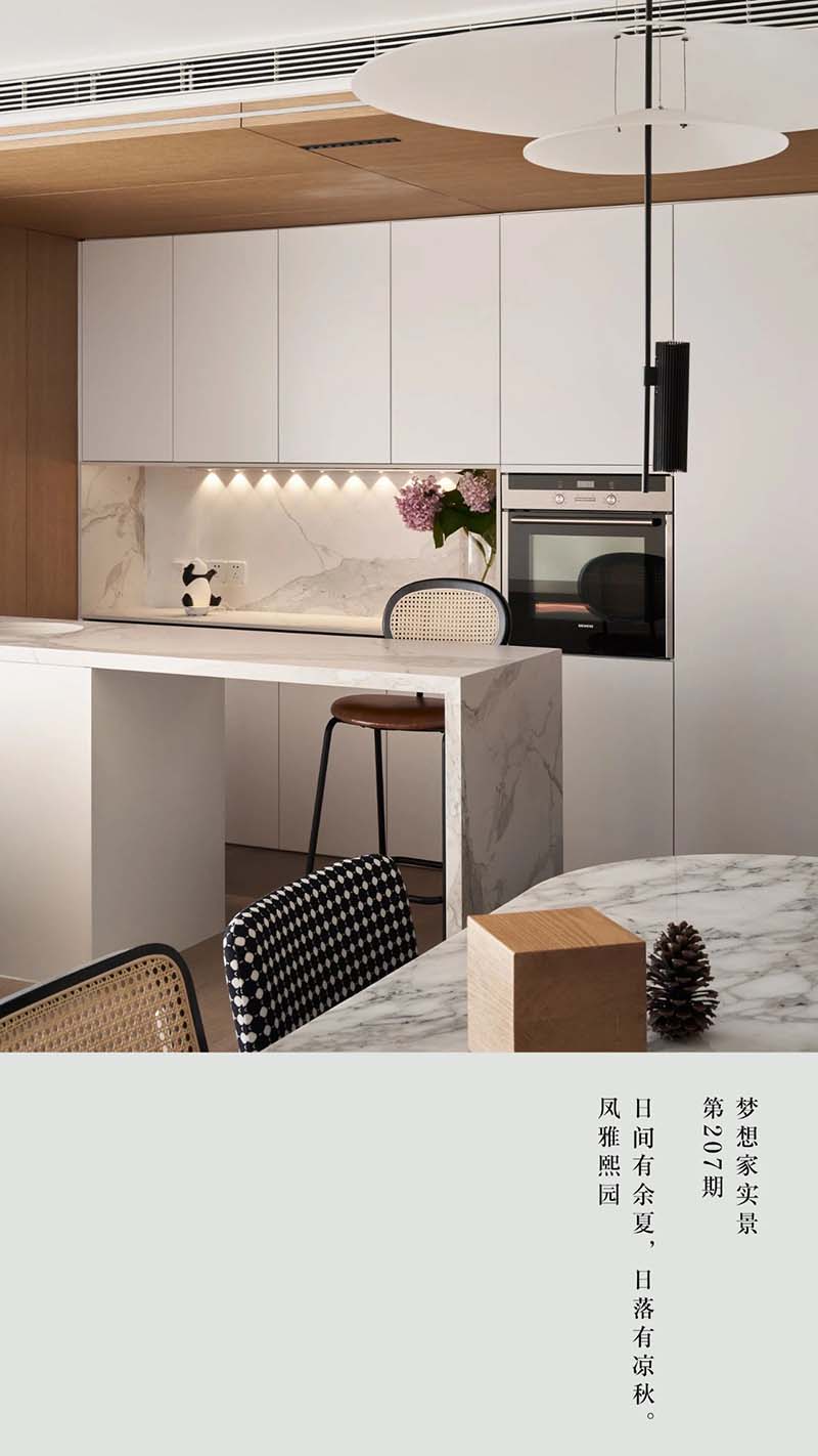 開(kāi)放式的設(shè)計(jì)增加了西廚的面積,空間更開(kāi)闊敞亮。大理石+原木的中廚,煙火氣滿滿的小廚房是治愈疲憊生活的良藥。