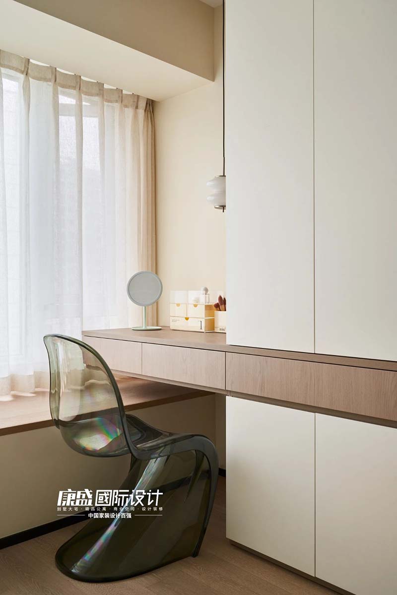 臥室不需要太多東西,實(shí)用性加之好的質(zhì)感,就能變得很舒服。衣帽間連著主臥,梳妝臺(tái)也有效利用了其中的空間,麻雀雖小,五臟俱全。