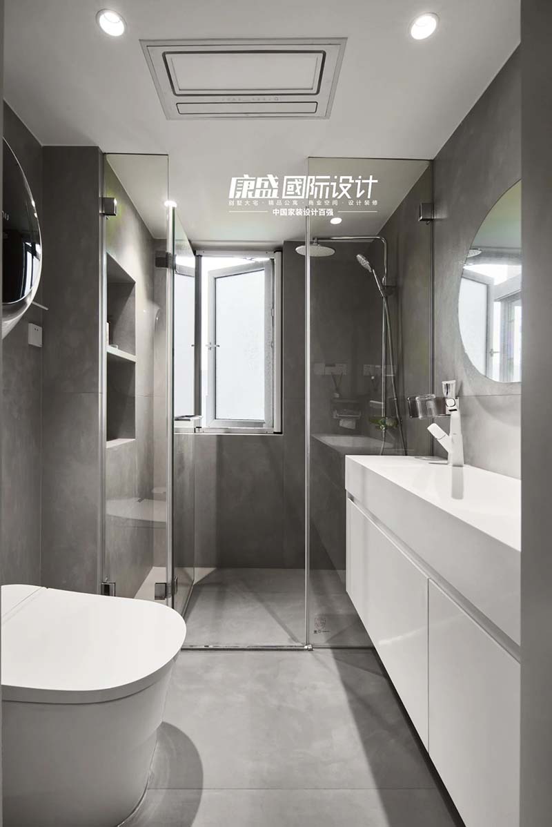 衛(wèi)生間空間不大,一字型的浴室設(shè)計(jì),在使用方便的同時(shí)在視覺(jué)上更顯寬敞。