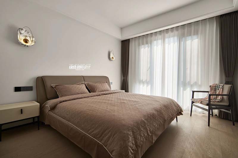 整體色調(diào)恬靜宜人,兼具古典韻味與當(dāng)代簡約之美。不用繁雜的基調(diào)和極具質(zhì)感的設(shè)計,營造家的溫度,床頭兩側(cè)的壁燈蔓延著一份平和優(yōu)雅。