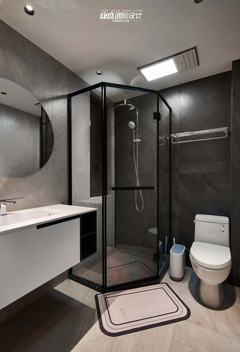 采用低飽和度大理石瓷磚通鋪,打造出內(nèi)斂有品味的空間,二分離的設(shè)計,很好的做到了干濕分離。