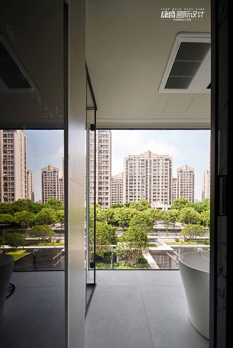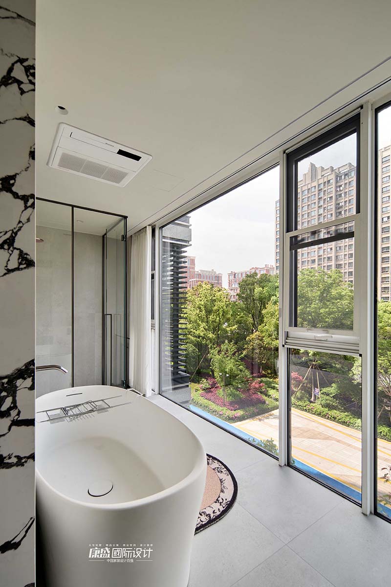 The main bathroom and dressing room are integrated, and the bathtub is located by the window. Sunlight pours into the bathtub through the window, making people feel warm and comfortable. Bathed in such sunshine. You will forget the fatigue of the day and completely relax your body and mind.
