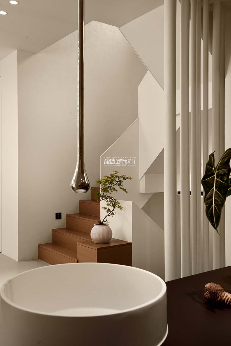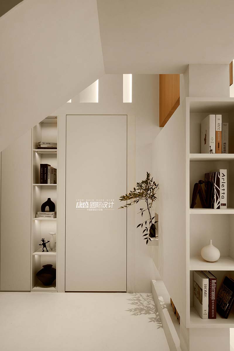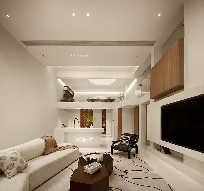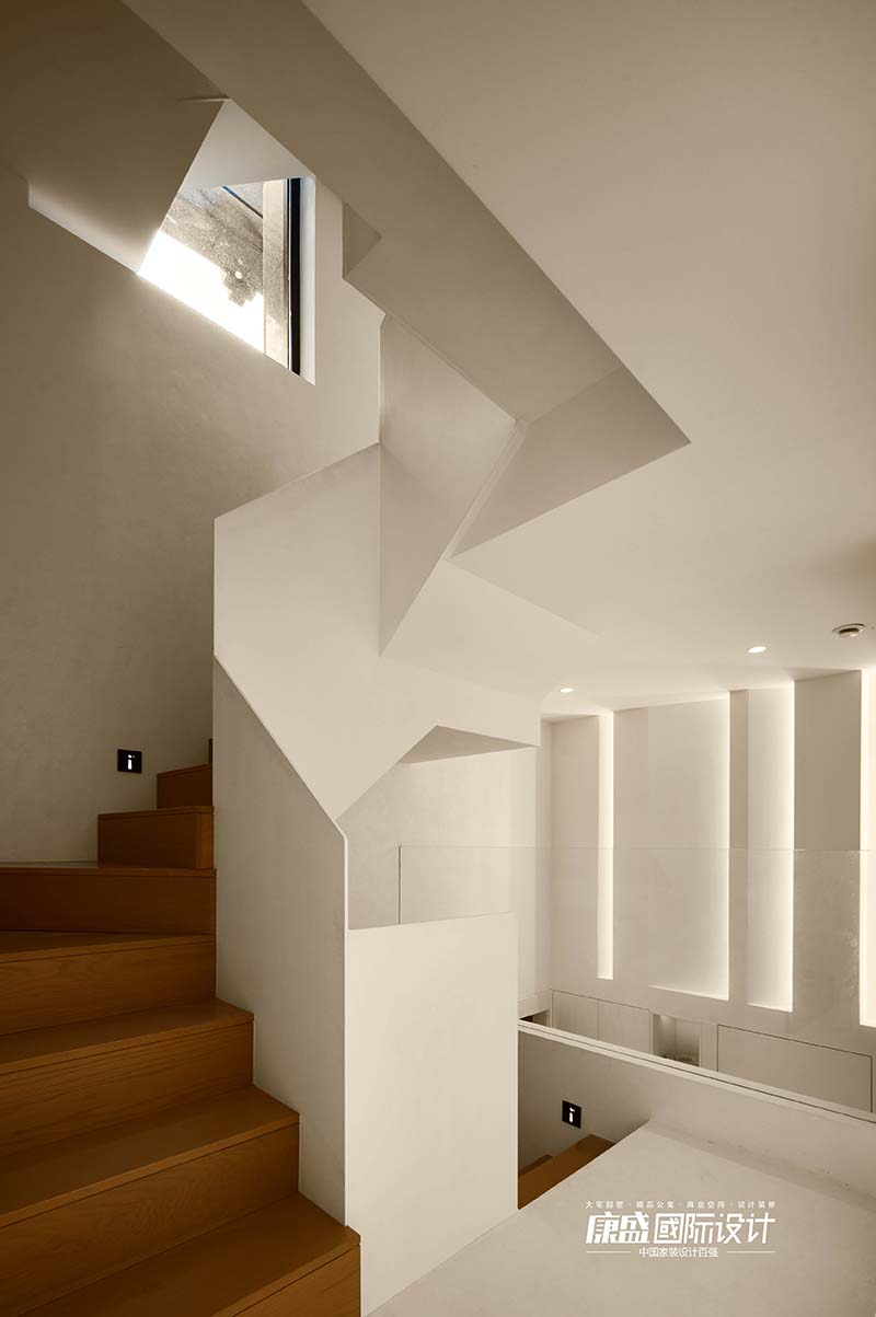 The top surface of the first floor is an irregular roof, on which a light film design was made to complement the circular hole. Looking up from the basement mezzanine, there will be a visual extension effect.