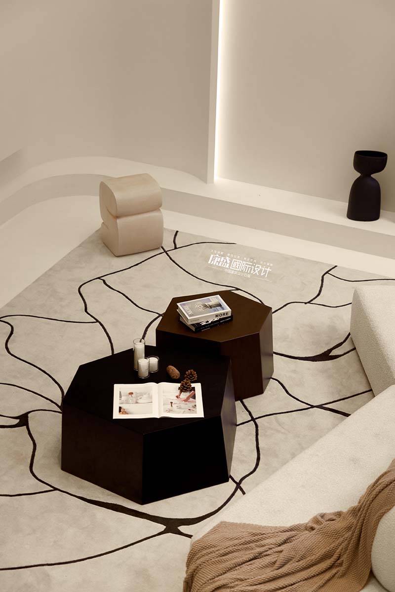 The rounded and angular furniture design enhances the safety of living, using soft materials such as cotton, linen, and velvet to make the touch more comfortable and complement the overall style. Soft decoration elements such as curtains, carpets, and pillows maintain consistency with the overall style in terms of color and material, enriching the visual effect of the space and enhancing the overall harmony and unity.