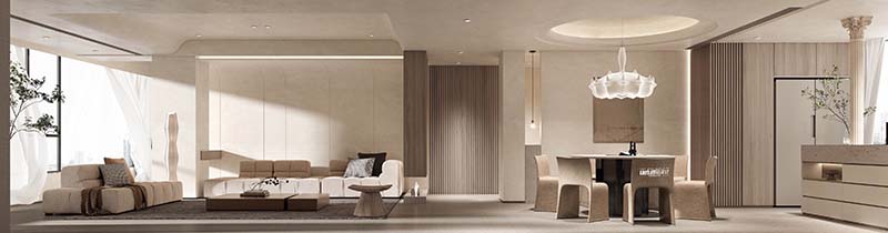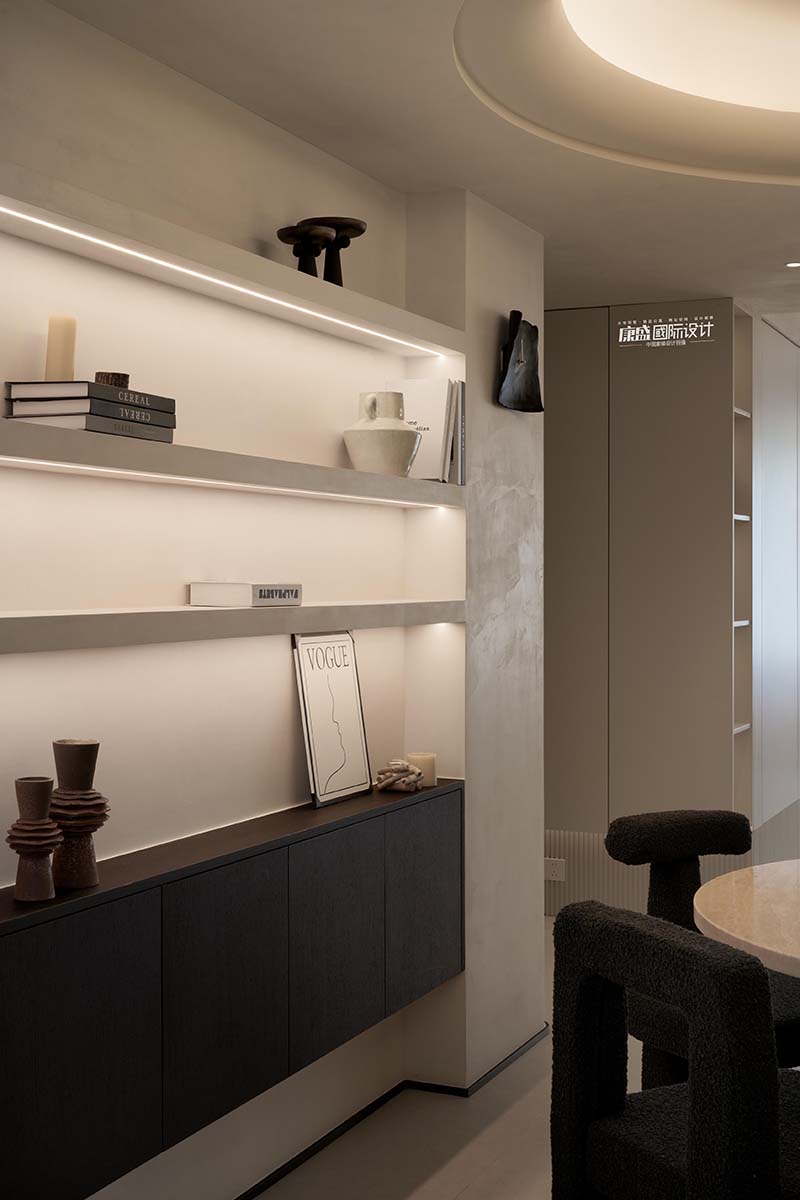 現(xiàn)代侘寂風融合了簡約的現(xiàn)代設計與深邃的侘寂美學,展現(xiàn)出流暢的線條和克制的色彩。這種風格既體現(xiàn)了前衛(wèi)的現(xiàn)代感,又保留了侘寂風的寧靜與內(nèi)斂。