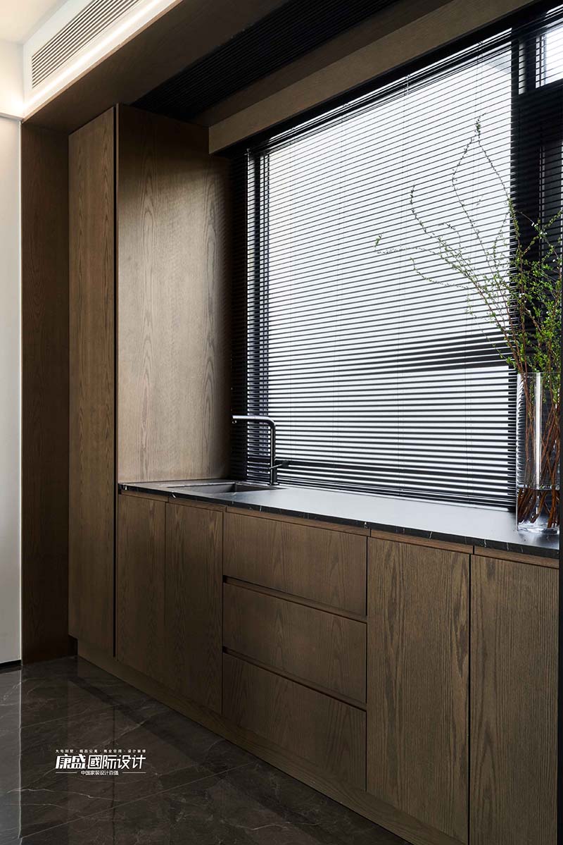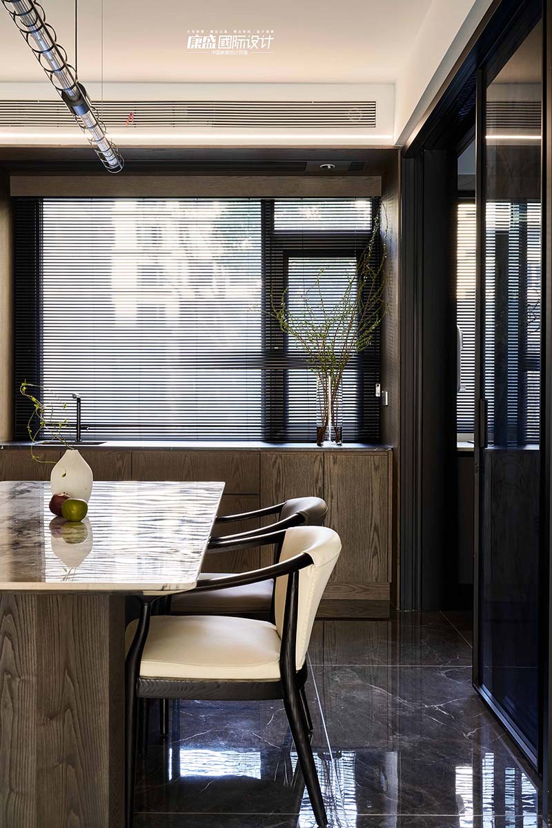 The integrated design of the guest restaurant makes the space more transparent and creates a visually larger and more comfortable home space. The restaurant adopts an open layout, stretching the scale of the entire space. The transparency in the sense provides a broader perspective on life and allows for a better experience of the beauty and warmth of dining time.