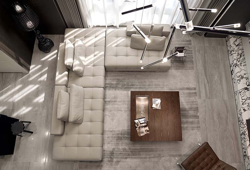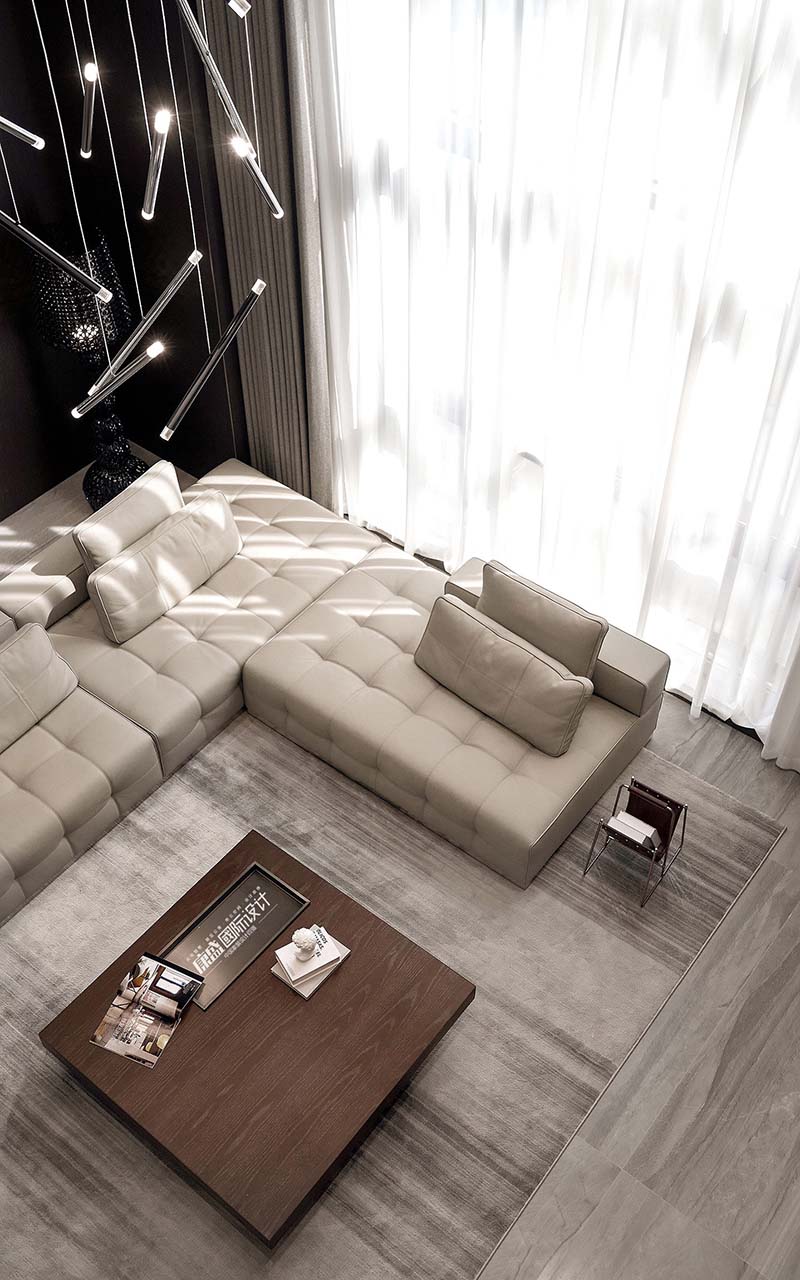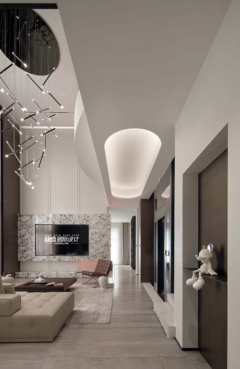 The living room on the first floor is the soul of the entire villa, with a ceiling design that brings grandeur. The double-height structure gives the space a higher sense of three-dimensionality and transparency, so that people are shocked by its atmospheric beauty as soon as they enter the door.