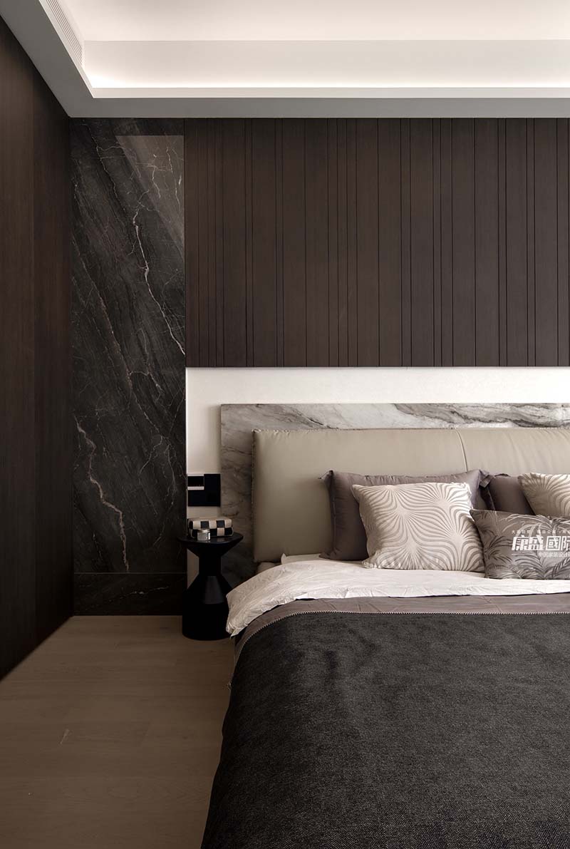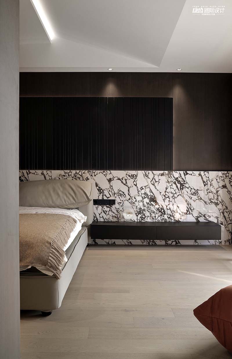 主臥套房 主臥展現(xiàn)了舒適與奢華的極致融合。大面積的臥室空間搭配柔和燈光,營造出放松的氛圍。主臥衣帽間寬敞有序,特別設(shè)置了一把白色椅子與全身鏡,為每一天的穿搭帶來便利。主臥衛(wèi)生間以大理石為主材,精致又實用,并與洗曬陽臺無縫銜接,兼具采光與私密性,讓生活更加舒心。