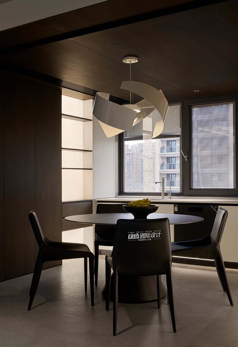 嵌入式餐廳區(qū)域則與廚房相連,簡(jiǎn)潔的餐桌設(shè)計(jì)使得家庭用餐變得溫馨而有序。這里不僅是享用美食的地方,也成為了家人之間交流與互動(dòng)的空間。