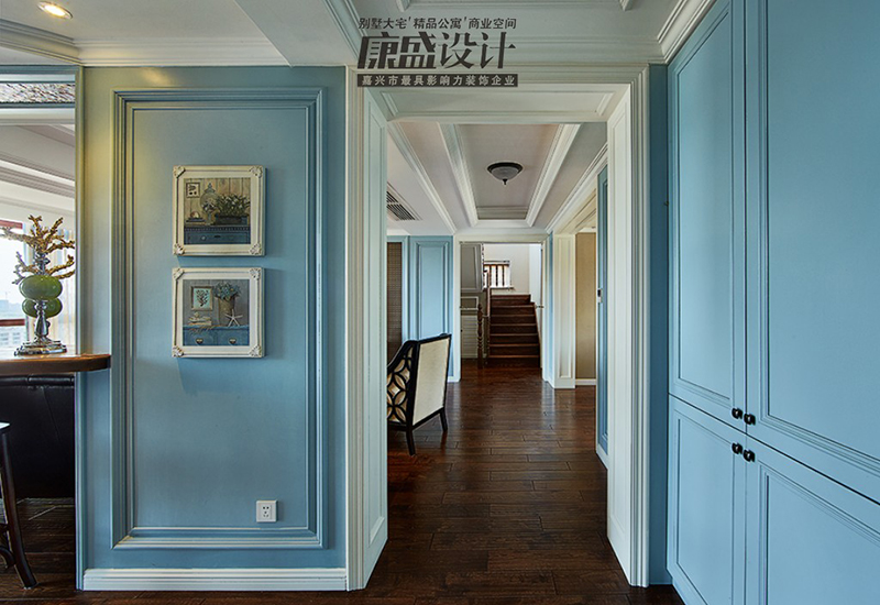 藍(lán)色,表示純凈、美麗、冷靜和理智,同時(shí)藍(lán)色也表示沉穩(wěn),相比傳統(tǒng)的白色墻面,更能代表業(yè)主的一個(gè)心境。