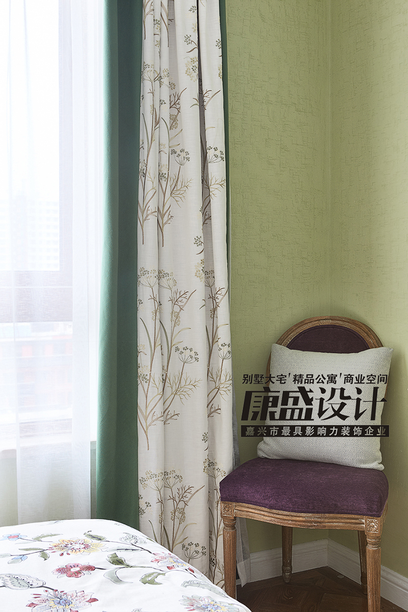 本案主基調(diào)的靈感來(lái)自于“海島”,藍(lán)色的天和海,原木色的沙灘,綠色的植被,粉色的花朵~想要營(yíng)造出度假般的輕松氛圍~客餐廳一抹蔚藍(lán),配上原木色法式風(fēng)情家具,給人帶來(lái)無(wú)限的想象。主臥花開(kāi)朵朵,蝴蝶紛飛。兒童房將藍(lán)天白云搬進(jìn)了室內(nèi),配上兩位小公主喜愛(ài)的粉色,夢(mèng)幻般的公主房。走進(jìn)客房仿佛置身于樹(shù)林中,每個(gè)角落都都在釋放新鮮空氣。廚房和兩個(gè)衛(wèi)生間都用了仿古藝術(shù)磚,將這種情調(diào)繼續(xù)延續(xù)~